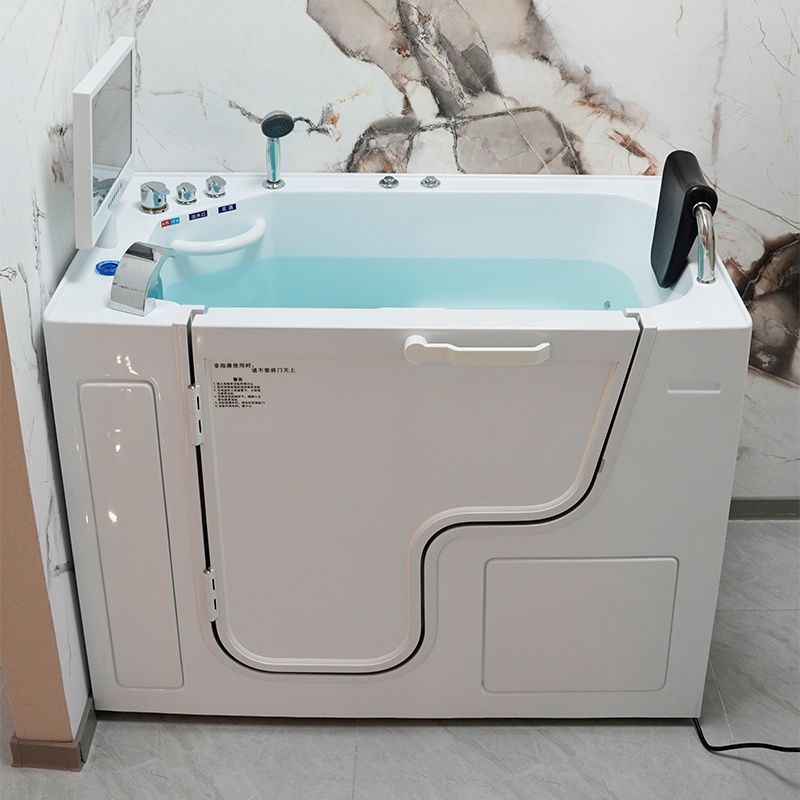 专为老年群体设计的无障碍洗浴解决方案,采用侧开式结构,搭配阶梯式防滑座椅,解决传统浴缸跨越高门槛的摔倒风险PU 背垫,不锈钢框架,不锈钢五金配件;配备映影系统,可一边洗浴一边看剧或听音乐; 水温保护:数字屏显+物理限温阀(默认锁定 38℃)