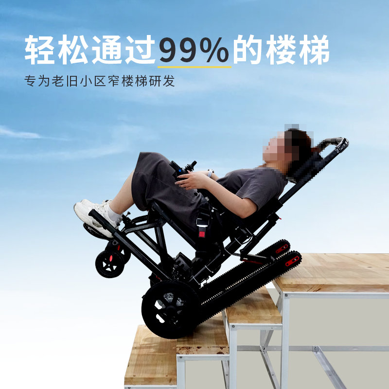 1.座板:高强度ABS板,牢固结实易清洗 4.操作面板:简洁,易操作 5.履带架多角度调节,适应不同角度的楼梯 4.座椅与履带打开无需弯腰即可实现
