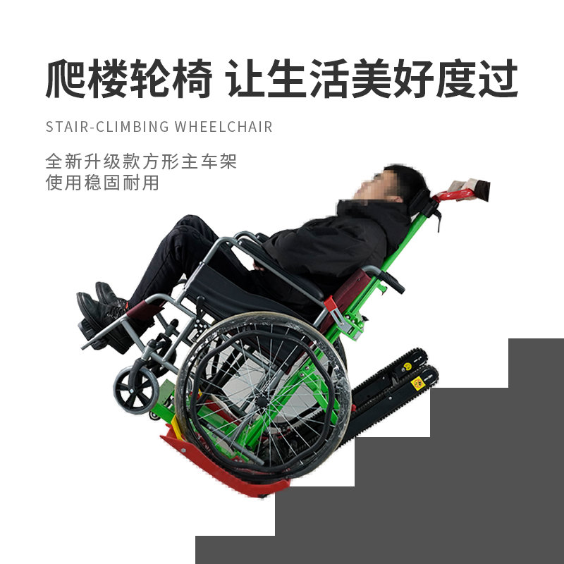1.座板:高强度ABS板,牢固结实易清洗 2.操作面板:简洁,易操作 3.履带架多角度调节,适应不同角度的楼梯 4.座椅与履带打开无需弯腰即可实现